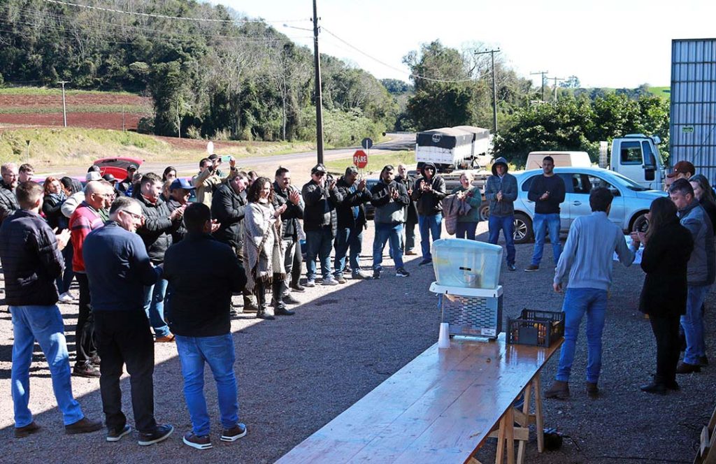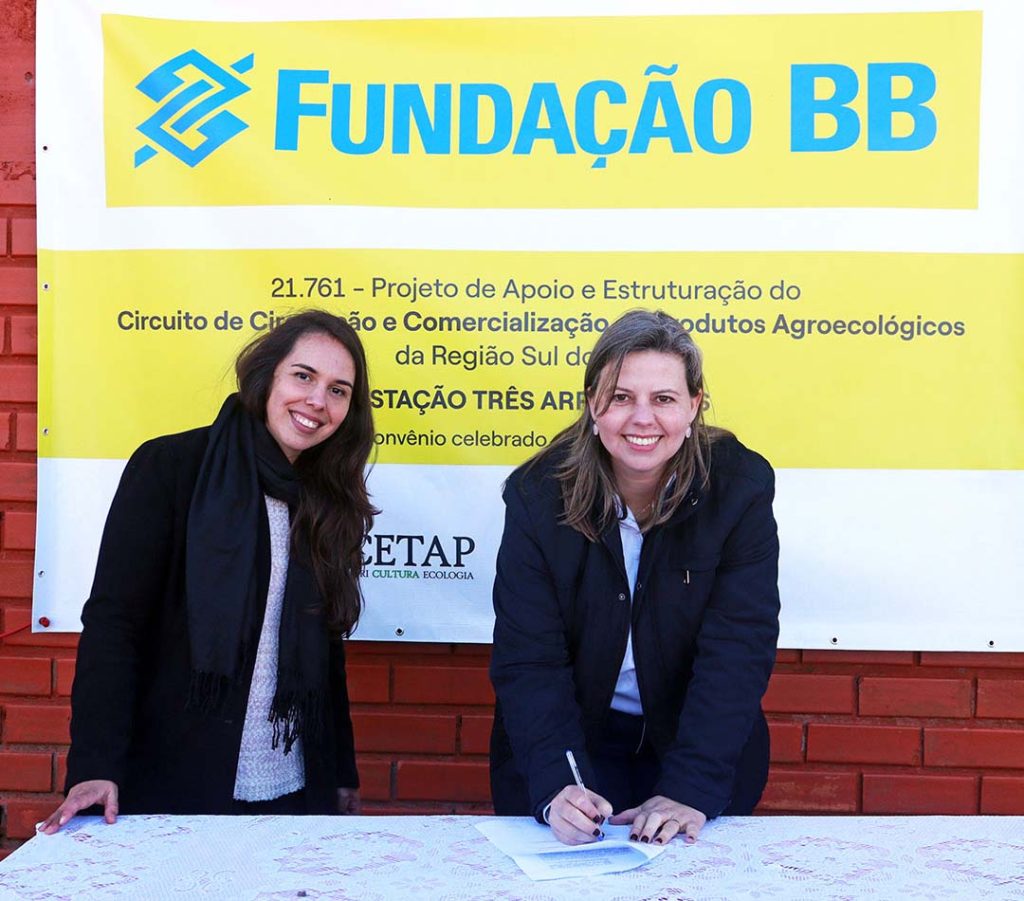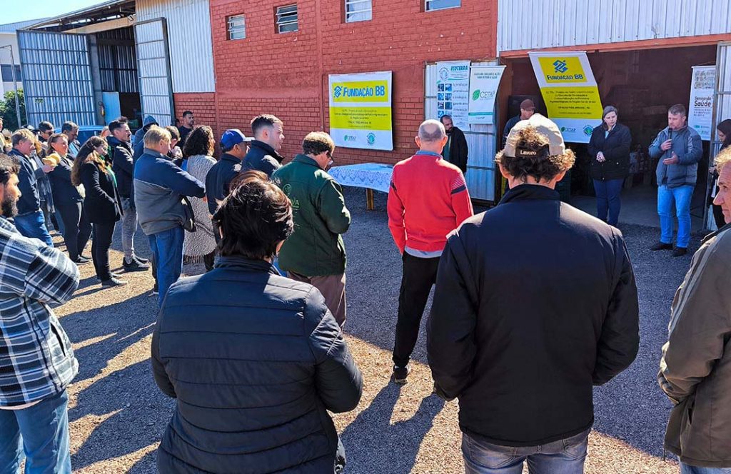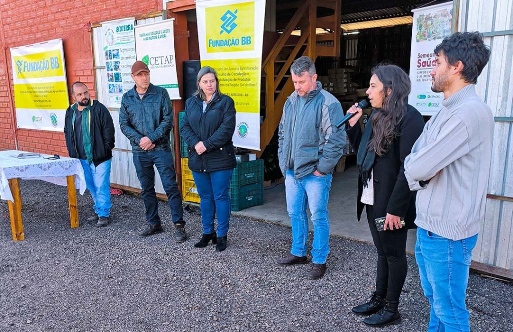 O ato solene de assinatura do contrato de parceria entre a Ecoterra e a Fundação Banco do Brasil (FBB) reuniu mais de 70 associados na sede da Ecoterra, em Três Arroios/RS, no sábado, dia 10 de agosto. Sheila Thomaz Bortolazo, gerente da agência do Bando do Brasil em Erechim/RS, participou representando a Fundação Banco do Brasil (FBB).